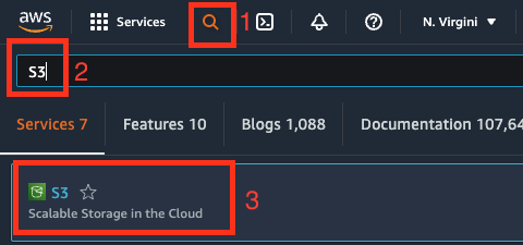 Type S3 into the search box