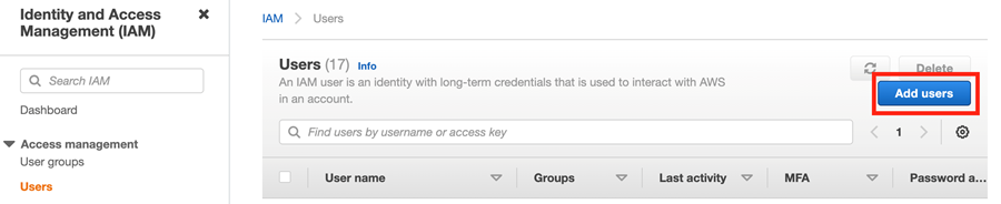 Click Users in the left navigation and then click the blue Add users button on the right.