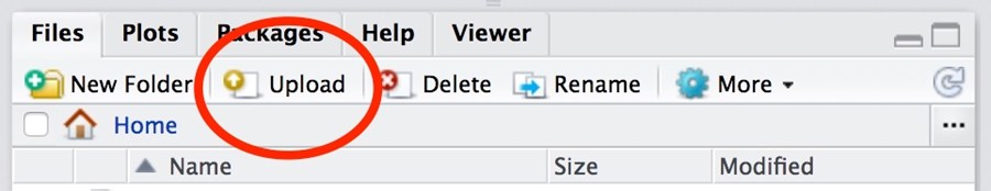 In addition to transferring files using the normal methods for Quest, RStudio users can also transfer files smaller than 500MB using the Files tab in RStudio. There is an upload button that will allow you to select files from your computer to transfer.