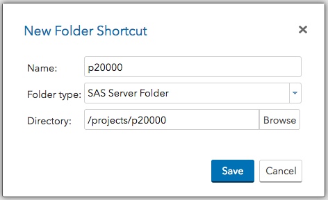 From the Menu, choose Folder Shortcut. Then give the shortcut a name and enter the path to your projects folder. For example, if your allocation ID was p200000