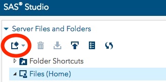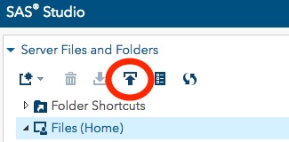 In addition to transferring files using the normal methods for Quest, SAS Studio users can also transfer files smaller than 500MB using the SAS Studio interface. See the upload icon in the Server Files and Folders window in the upper left of the session.