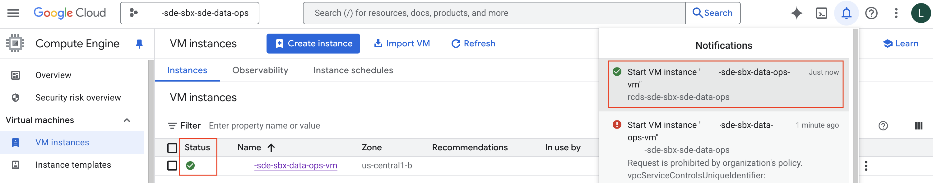 When the VM is running, the Status symbol will turn Green. You will also receive a notification in the console.