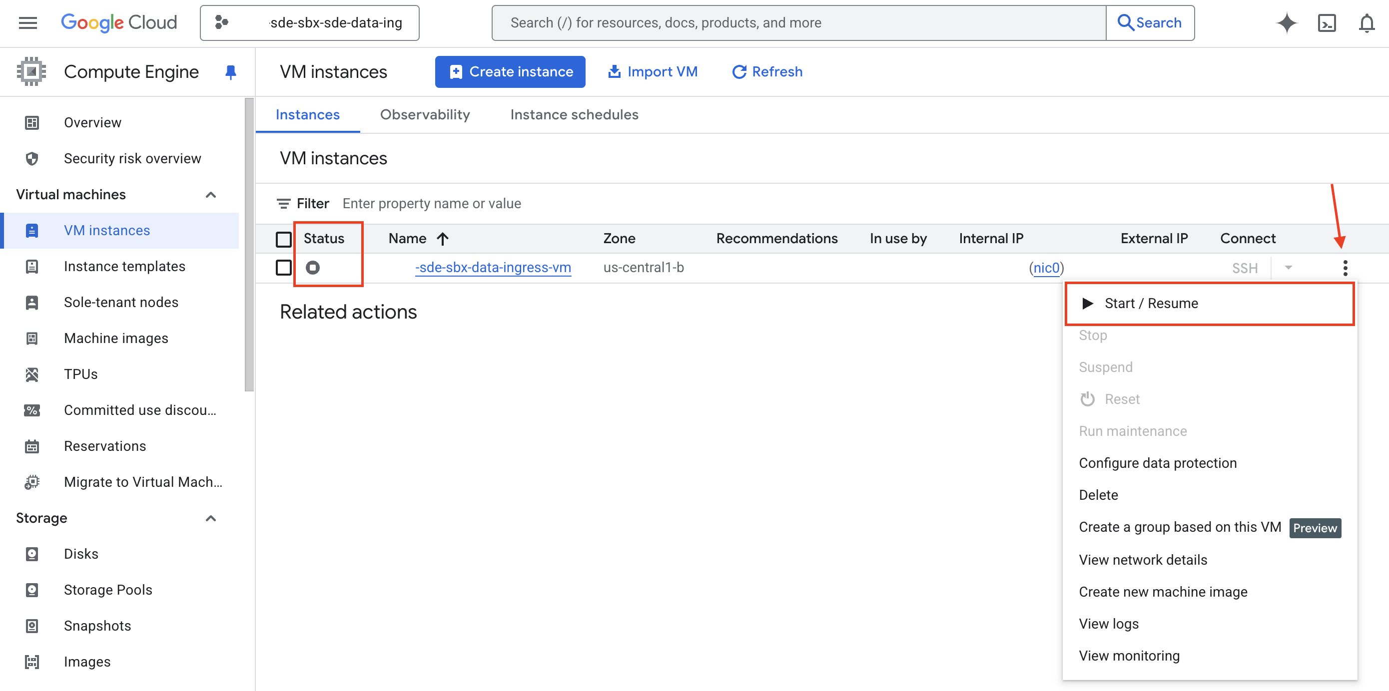 Make sure you’ve started the VM. From the VM Instances Page , with the relevant project selected at the top of page: