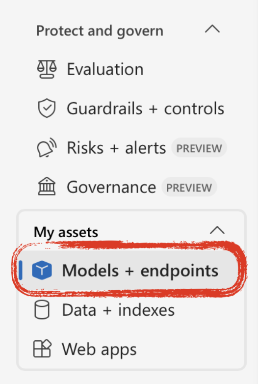 In the left-side menu, near the bottom, look for a section called “My assets”; click on “Models + Endpoints” to list which models you have deployed. At this point it should be empty.