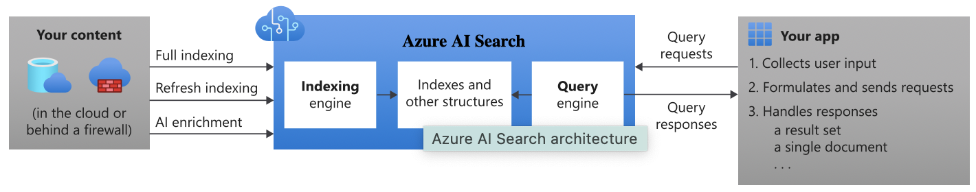 AI Search is composed of two stages: indexing and querying (image from the Azure documentation .